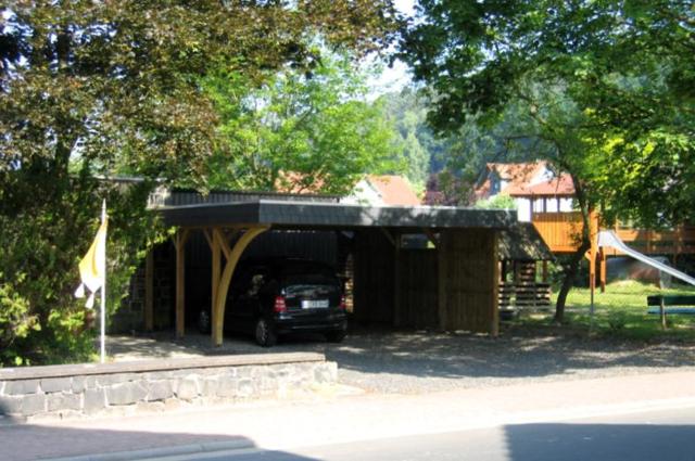 Since we need and have a car this did present a problem for us, so we began by removing part of the front wall and removed some large trees. Sometime later we had the tree stumps removed and the ground prepared for surfacing. Then, about 18 months later, through the overwhelming generosity of a friend we are able to have a large carport constructed. For detailed documentation click on the picture above. We hope to surface the whole area with paving stones by the fall of 2007. |